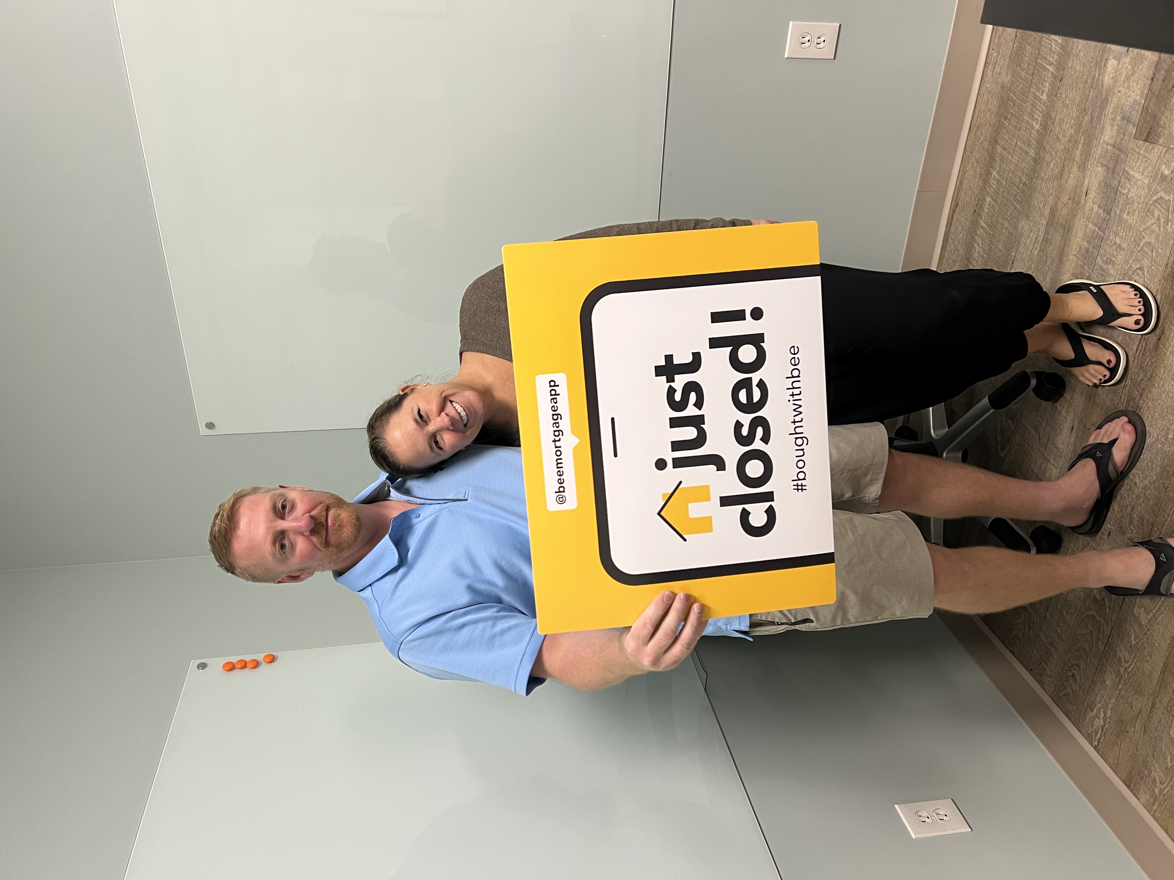At Bee, you work with one loan expert, start to finish. This dedicated loan officer works for you and acts as a liaison between you and the lender. They’re your primary point of contact and will be with you at closing to make sure all the closing docs are in order and that you have all your questions answered. Then, once you’re done signing, you’ll smile real big and hold up this sign.
